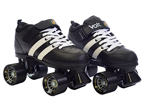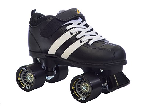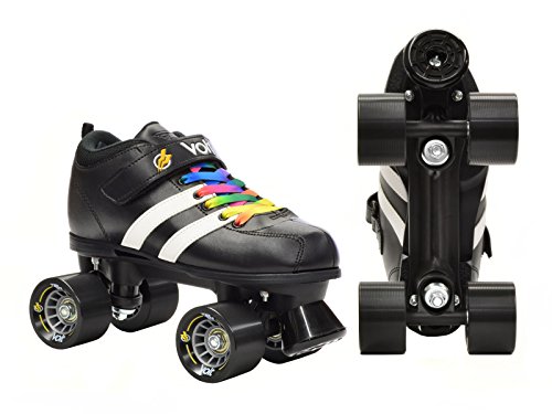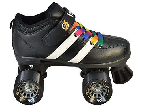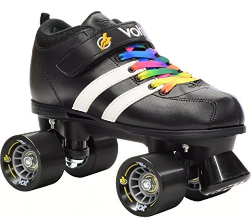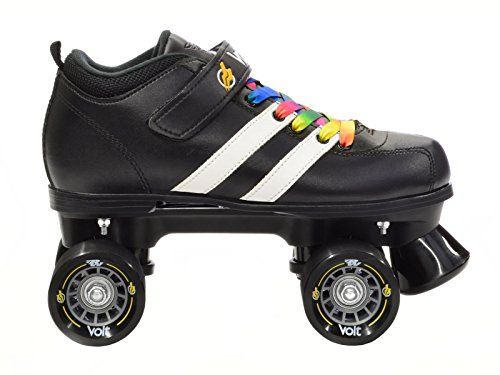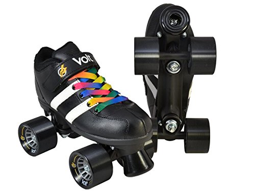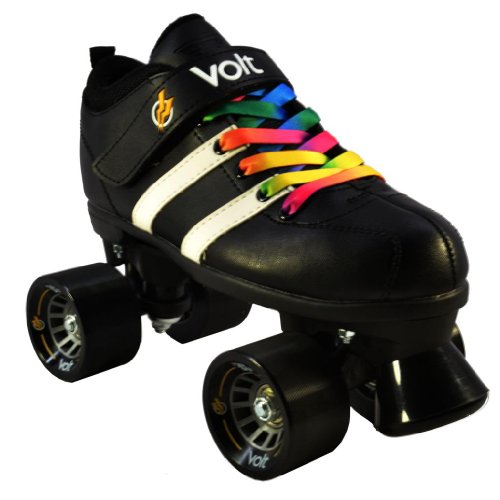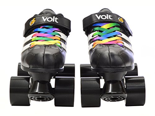 Studio : Riedell Publisher : Riedell Binding : Misc. Product Description Riedell RW Volt Quad Speed Skates - Riedell RW Volt Roller Skates with Rainbow Laces - Looking for a high quality roller derby package at an affordable price? The Riedell RW Volt speed skate with rainbow laces is perfect for roller derby or even recreational skating. Riedell RW Volt quad speed skates with rainbow laces feature a comfortable boot with plenty of padding and some really cool racing stripes for a sporty look. They've added in some solid indoor Volt speed wheels for a really special speed skate. As an added bonus we've added these special rainbow laces for a custom look that's not available anywhere else! The Riedell RW Volt with rainbow laces is a favorite of all ages and sizes. Riedell skates owns and produces all RW skates including the Riedell RW Volt with rainbow laces so you know that these skates have a high standard of quality. The performance and style of the Riedell RW Volt skate with rainbow laces is unmatched at this price level. These Riedell RW Volt skates have been sold out in the past so make sure you pick up a pair today! - SIZING: These skates come in Men's sizes only. Ladies, please select one size down from your normal shoe size for the equivalent fit. For example; A Men's 7 equals a Ladies 8. Remember, since the skates are in Men's sizes, the men's size you select will be shipped out to you. For example; If you select a Mens 7/Ladies 8 when placing your order, a size 7 will be shipped to you. Sizes 1-3 are Unisex Kids sizes. 0