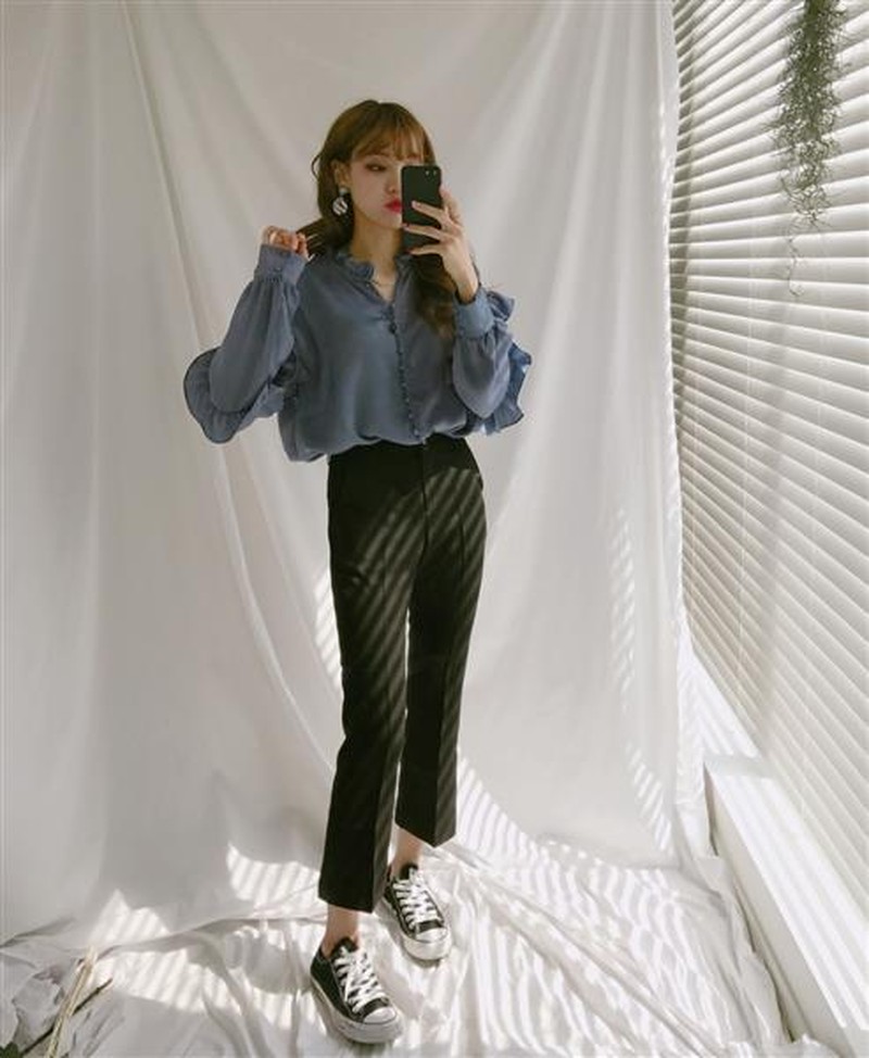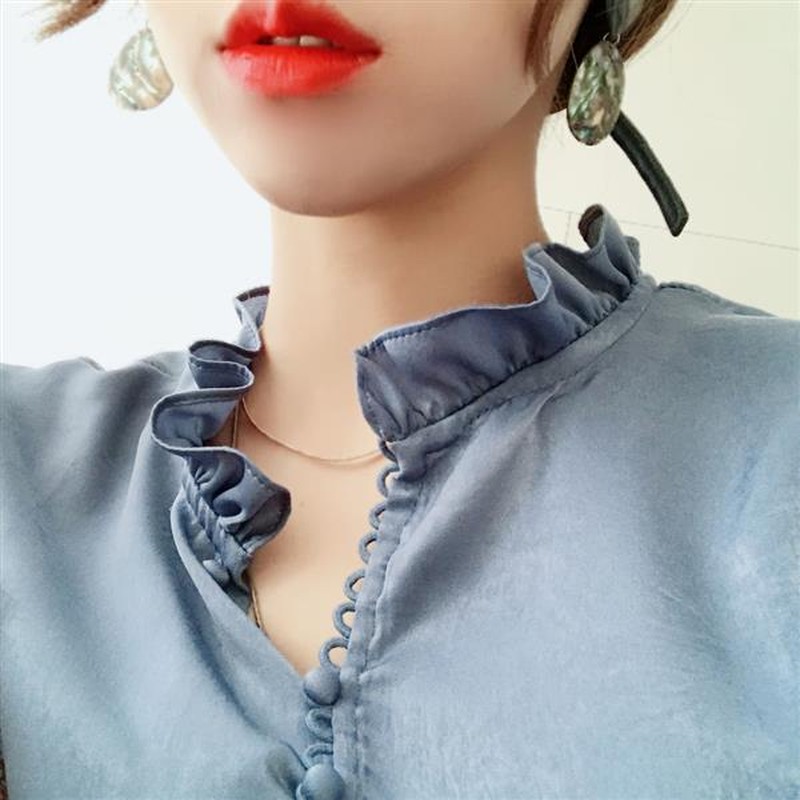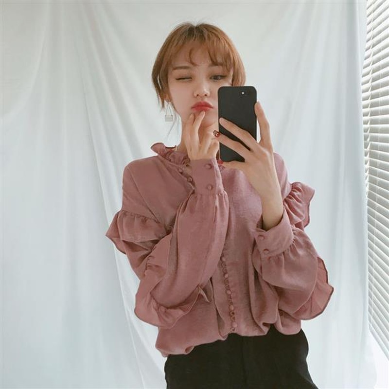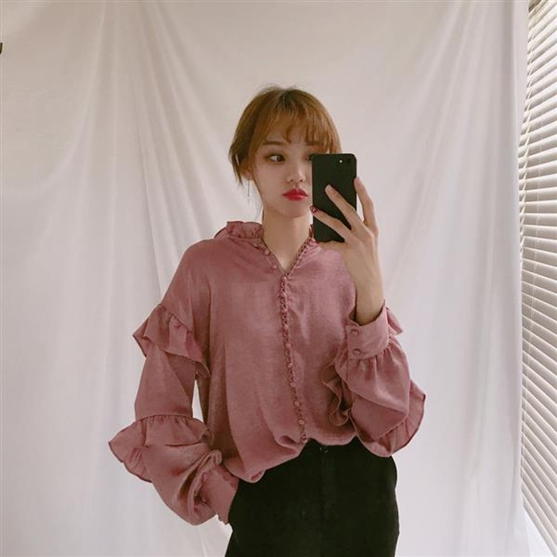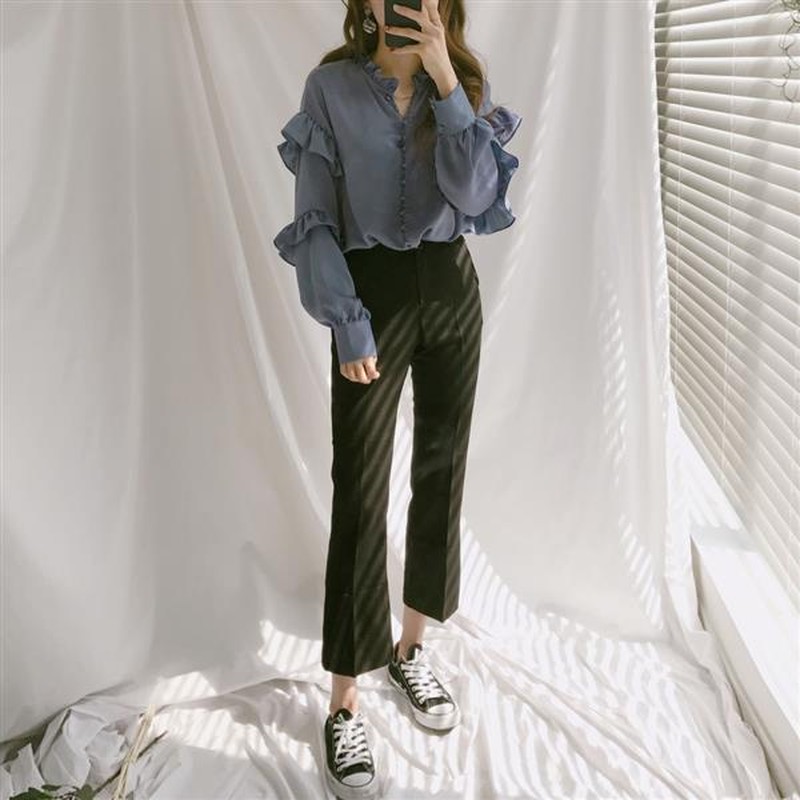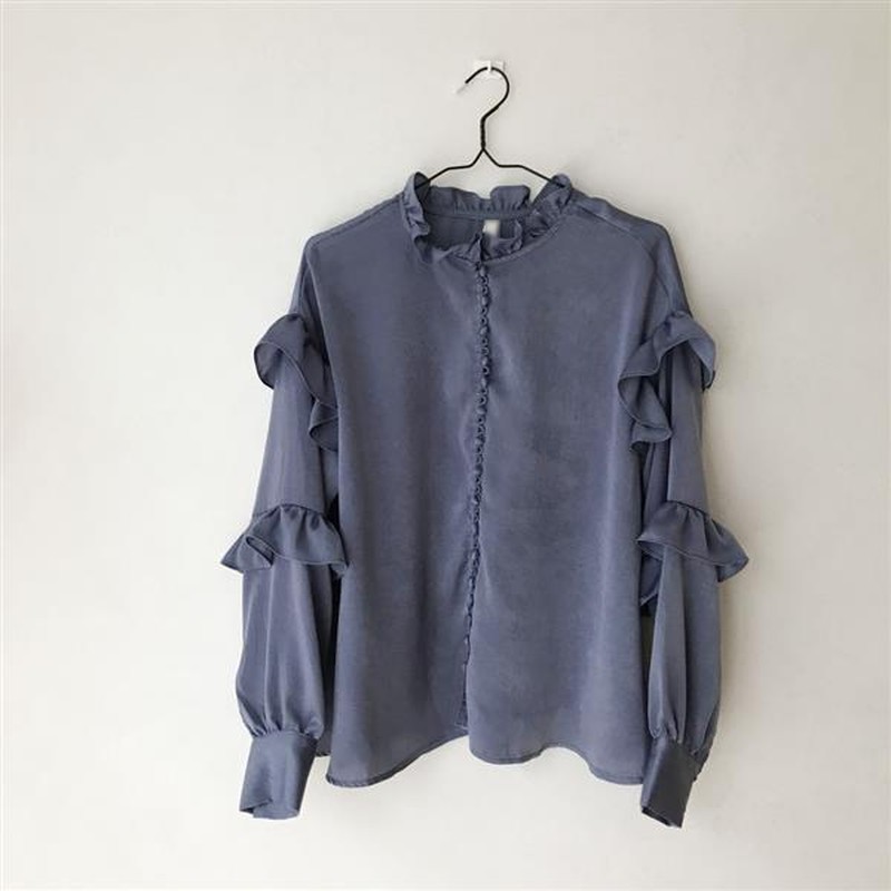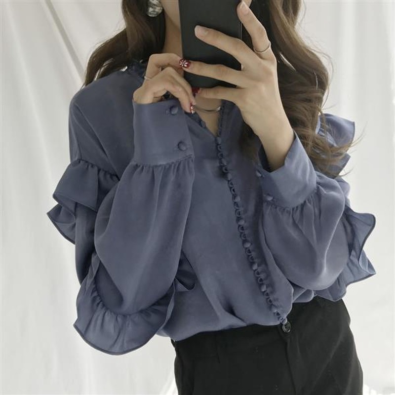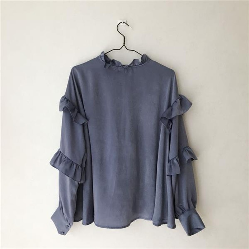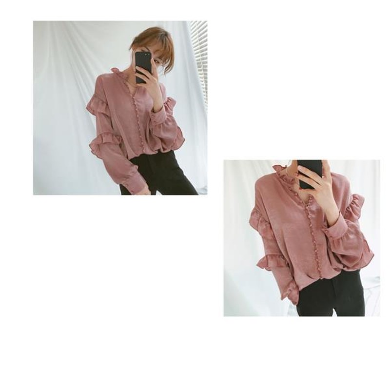 ♢ポイント♢ バルーン袖がアクセントの可愛い長袖ブラウスです。 とろみのあるシフォン素材に首元と袖のフリルが女性らしい一枚です♪