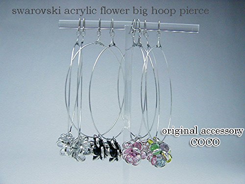 아뜰리에 자《스》 스와로브스키 아크릴 플라워 빅 hoop 피어스(귀걸이) 실버 레이디스 반짝반짝 파티 티타늄 피어스(귀걸이) 수작업 일본제 금속 알레르기 #등이다 꾸중 swarovski 블랙