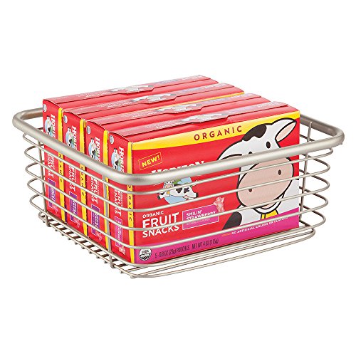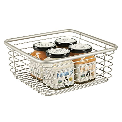 mDesign Wire Basket for Kitchen Storage to Hold Pantry Items, Condiments - Square, Satin