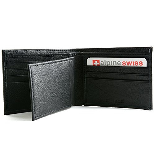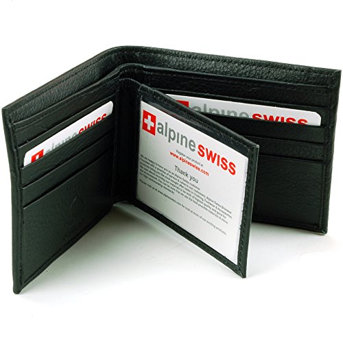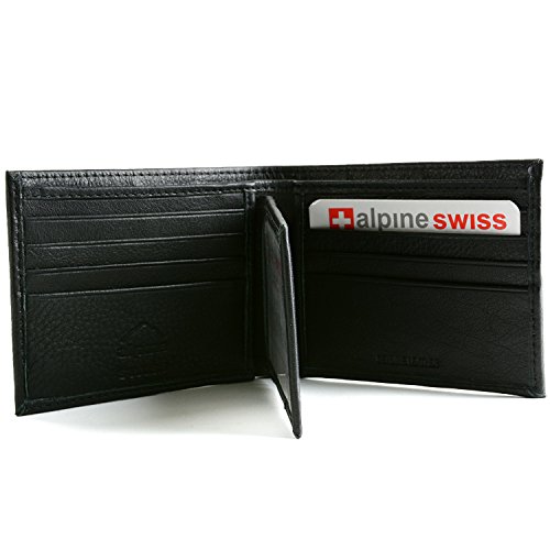 Alpine Swiss Men's RFID Blocking Leather High Capacity Bifold Wallet Black