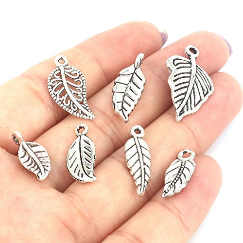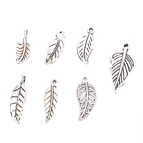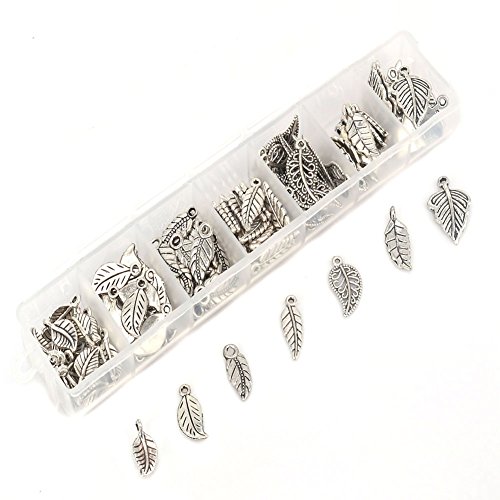 Aprilsky 120 pcs Assorted Tibetan Silver Leaf Spacer Charms Beads Jelwelry Making Fingdings Pack Mix Lot with Container