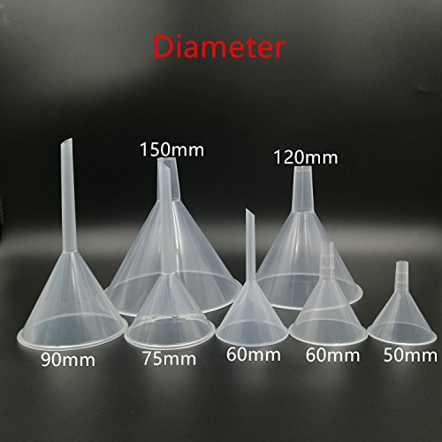 - 7pcs multipurpose plastic funnel diameter: 50mm, 60mm(short), 60mm, 75mm, 90mm, 120mm, 150mm.