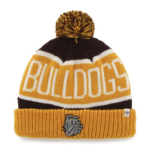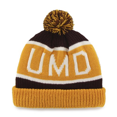 MINNESOTA DULUTH BULLDOGS YELLOW CUFF "CALGARY" BEANIE HAT WITH POM - NCAA UMD CUFFED WINTER KNIT TOQUE CAP