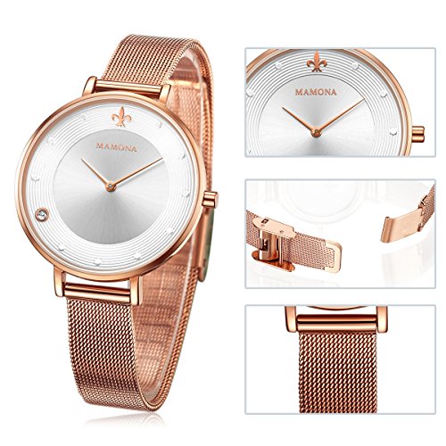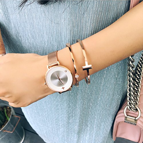This mesh band watch is modern and sophisticated. The watch looks simple at a glance. But if look closer, you will see our thoughtful design: - Two layered dial.
