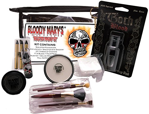-. Feature : When the skin comes off, you are stripped of flesh and left with only bones / Kit includes: FX Skull foundation, Black Blood Lipstick, Skull eye shadow, / 3 FX make-up crayons, FX Blood, 4 pc brush kit, Deluxe make-up sponge and full instructions / Comes in a clear zippered make-up case / Perfect Halloween or Theatrical makeup kit, Made in the USA, Non-Toxic, FDA approved