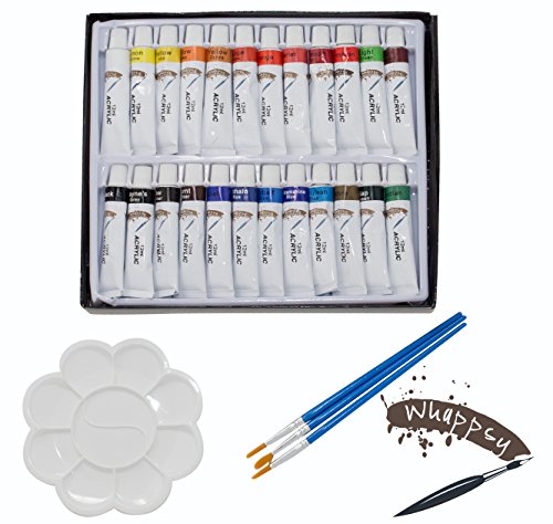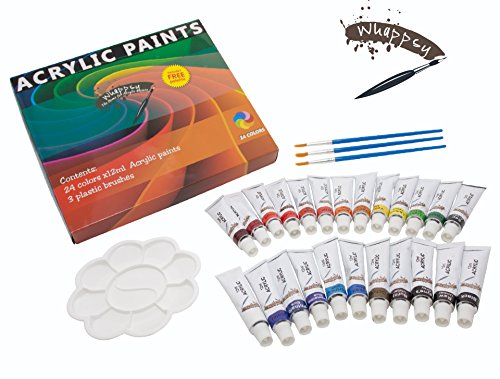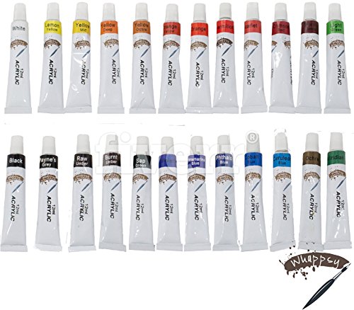 - COLOR MIXING WITH EASE - Experiment from the 24x12 ml of bright and vibrant colors with our easy-to-use acrylic paint tubes. Comfortably mix colors to create a range of unlimited shades to suit your project with the support of a FREE spacious palette. To achieve a diluted color or thinner texture, this product can be mixed with water and the paint is easily removed from brushes with warm water and soap when it is not dry.
