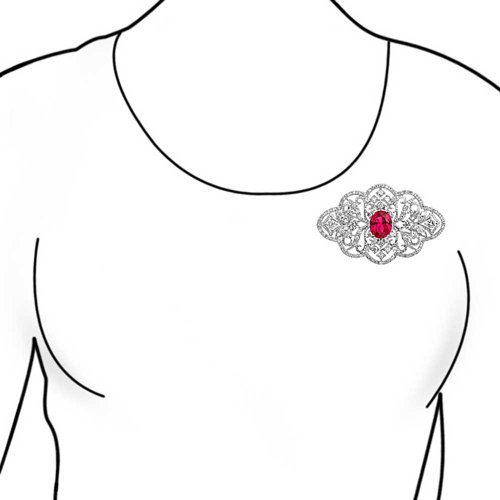 -. Title : Bling Jewelry Oval Red Simulated Ruby CZ Flower Brooch Pin Rhodium Plated