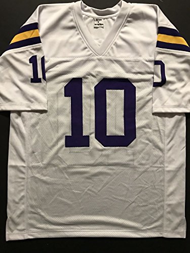 Autographed/Signed Fran Tarkenton "HOF 86" Minnesota Vikings White Football Jersey JSA COA
