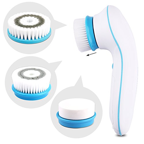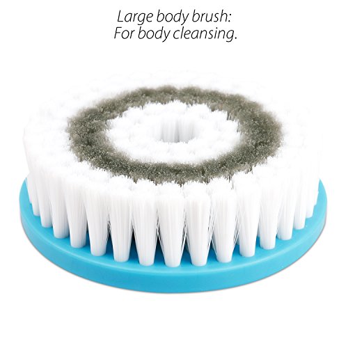 Include 3 attachments: Facial brush for removing blackheads,whiteheads, minimize pores, smooth bumpy;Make-up sponge for Soft cleaning before making up;Large body brush for body cleansing.