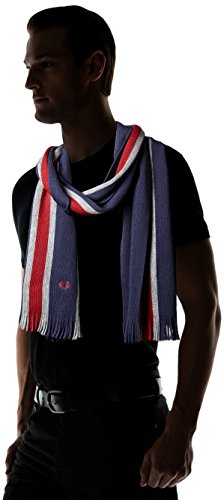 Fred Perry Men's College Stripe Scarf, Navy/Maroon/Grey Marl, One Size