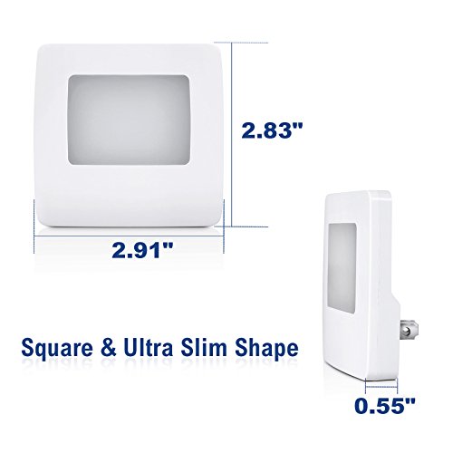 Size of every night light is 2.91" x 2.83" x 0.55", ultra slim designed which is pretty space saving whether on the wall or in your travel package. Also the night lights fits flat against the wall and its modern design will fit in well with your home decor.