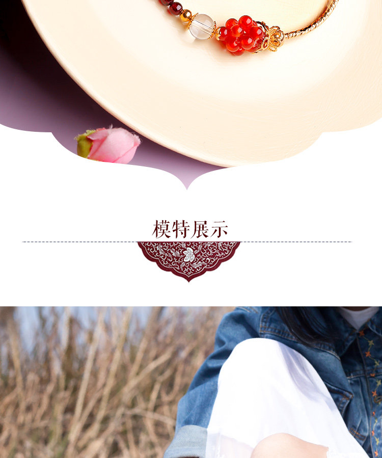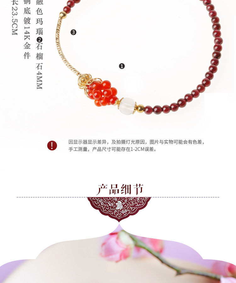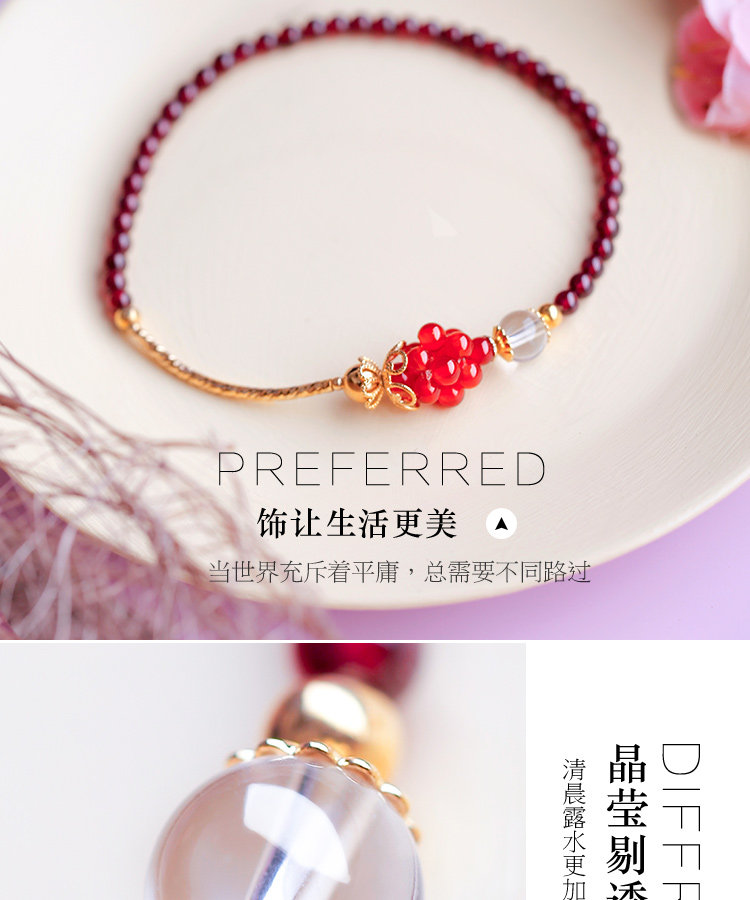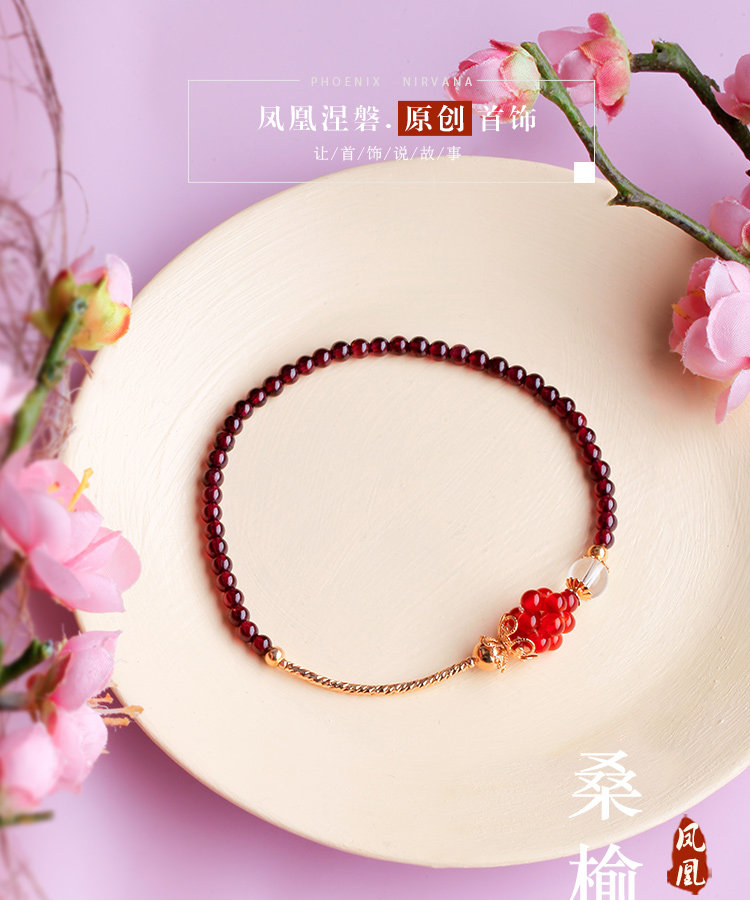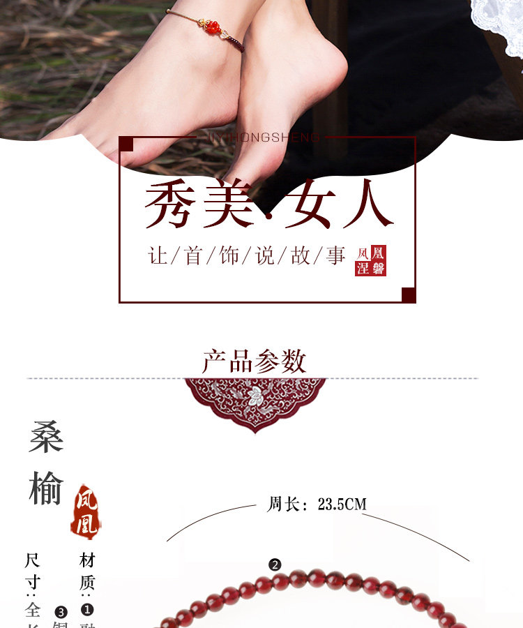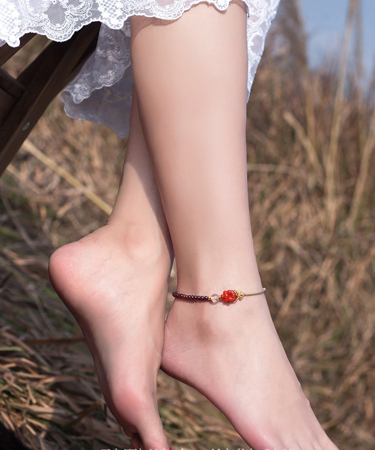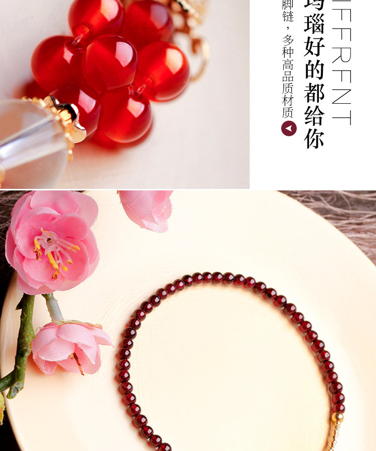 凤凰涅磐石榴石玛瑙脚链女 甜美个性百搭镀金手工中国风复古饰品