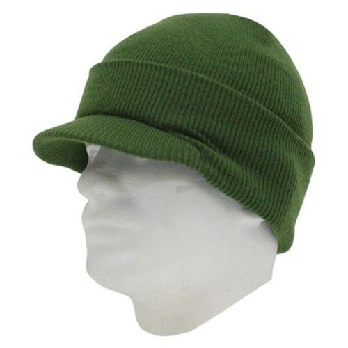 -. Title : Decky Cuffed Knit Visor Beanie Jeep Cap (One Size, Olive Green)