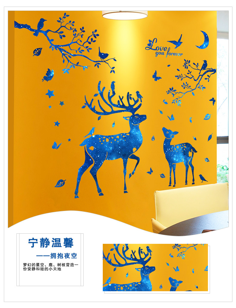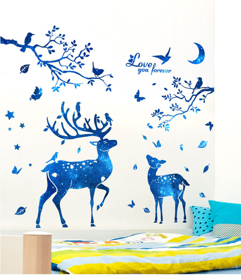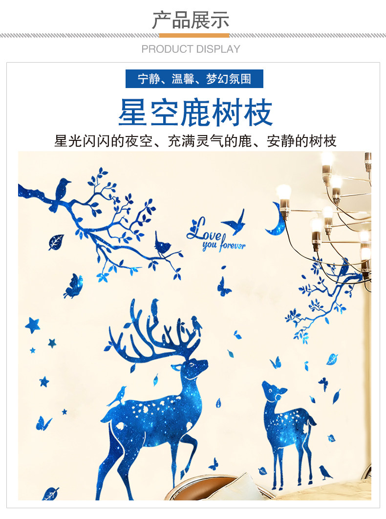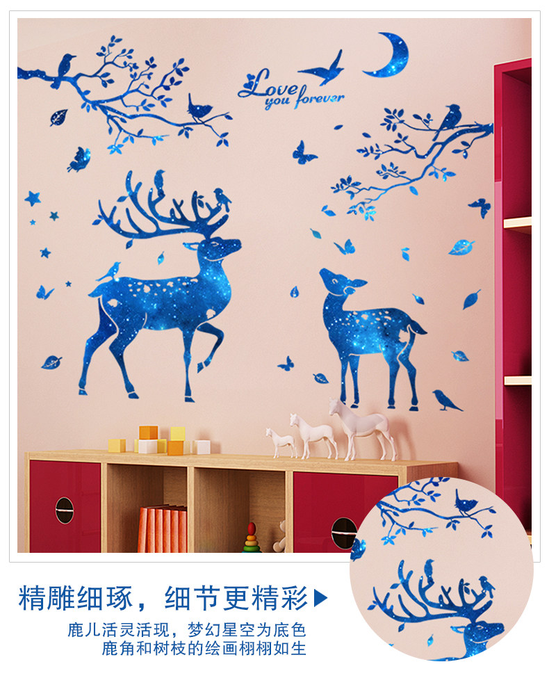 北欧风墙贴纸房间客厅背景墙壁装饰品温馨创意个性星空鹿树枝贴画