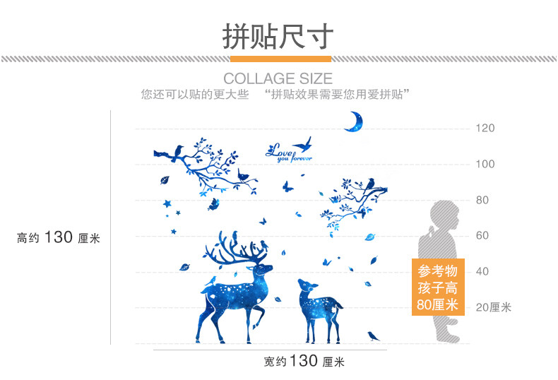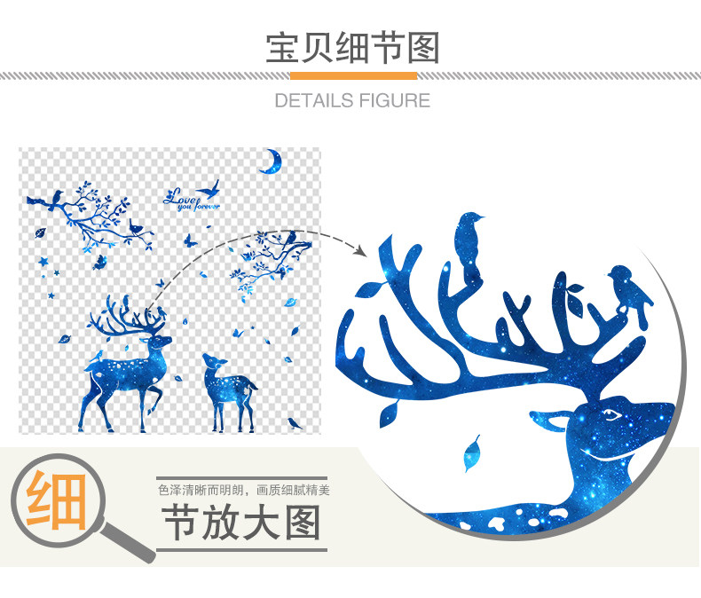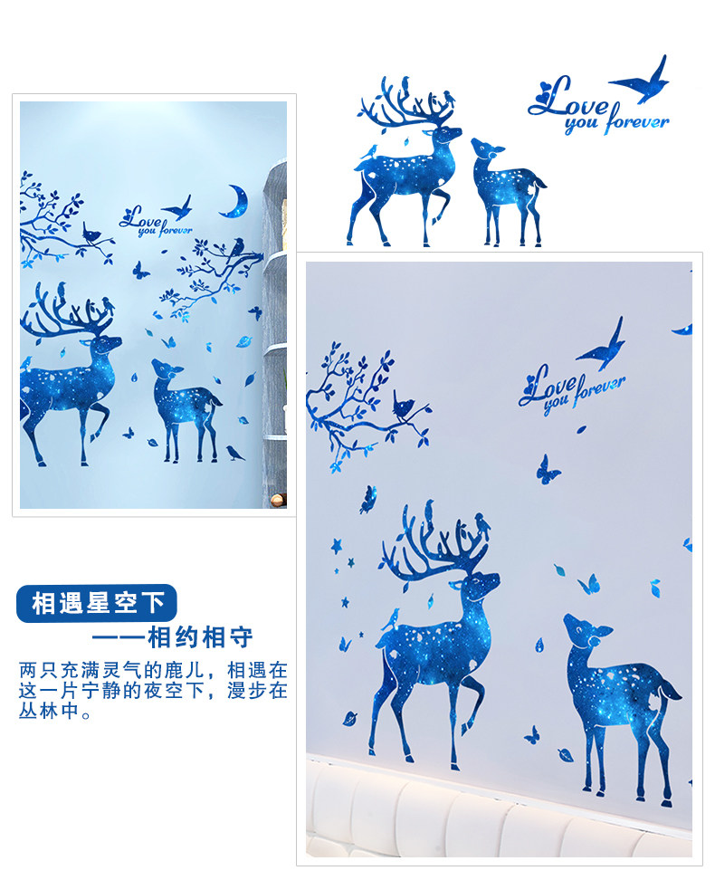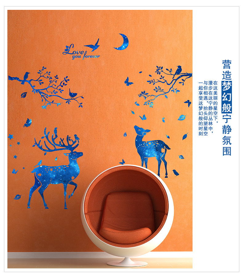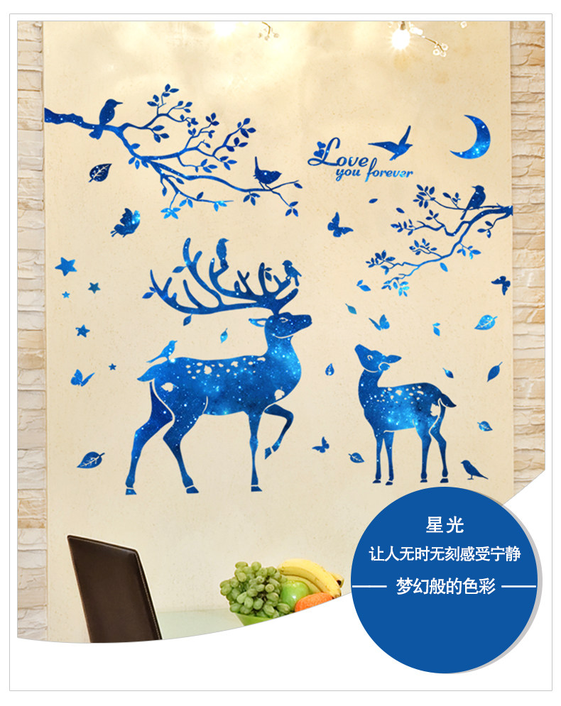 北欧风墙贴纸房间客厅背景墙壁装饰品温馨创意个性星空鹿树枝贴画