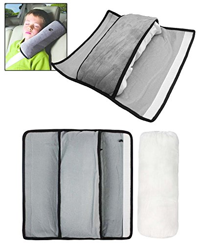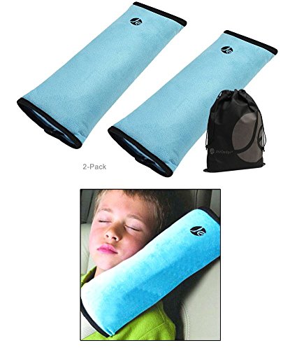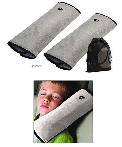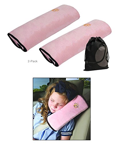 The plush soft seatbelt pillows provides comfort and neck support to your child's neck. Perfectly sized for a child, the seatbelt pillow is a great way to provide neck support, and great to use a headrest. The 2 pack comes with 2 padded seatbelts. Easy to use, just add the universal seatbelt pad onto a seatbelt with the Velcro opening/closing. The removable seatbelt pad is easy to remove and can be cleaned. The shoulder pad is filled with PP cotton and covered with a soft micro-suede fabric. The pads are a great way to prevent a sore neck or shoulder when sleeping in a car, or just simply riding in one. Comfortably protect your child's neck and shoulder with these 2 plush soft neck and shoulder headrest seatbelts pillows.