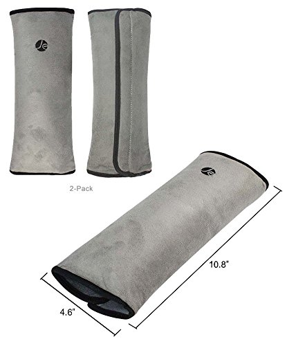 JAVOedge 2 Pack Gray Child Plush Soft Headrest, Neck Support Pillow, Shoulder Pad Car Safety Seatbelt + Bonus Travel Bag