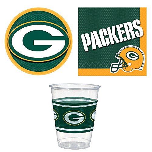 -. Feature : Cheer on the Green Bay Packers with these officially licensed party supplies! / Bundle Includes: 1 Package 8 Count Dinner Plates / 1 Package 16 Count Luncheon Napkins / 1 Package 8 Count 16 Ounce Plastic Cups / Show you packer P.R.Ide at your next tailgating event, super bowl party, and more!