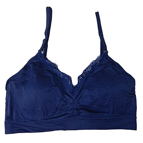 Coobie Strappy V-Neck Lace Trim Bras,Full Size,Nude/White,Full,Navy