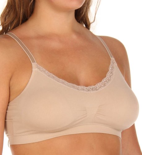 Coobie Strappy V-Neck Lace Trim Bras,Full Size,Nude/White,Full,Seafoam
