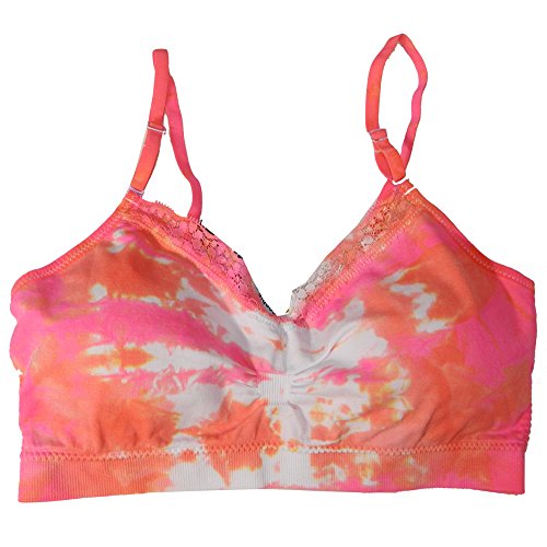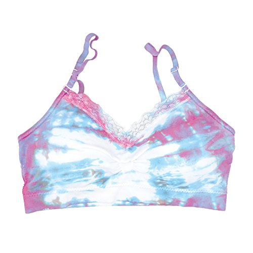 Coobie Strappy V-Neck Lace Trim Bras, Tie Dye, Cotton Candy, One Size