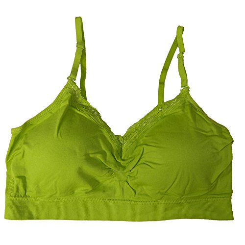 Coobie Strappy V-Neck Lace Trim Bras,Full Size,Nude/White,Full,Lime Green