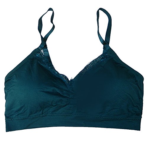 Coobie Strappy V-Neck Lace Trim Bras,Full Size,Nude/White,Full,Teal