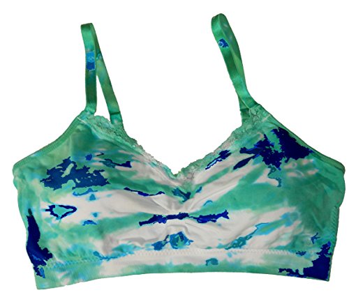 Coobie Strappy V-Neck Lace Trim Bras, O/S, Turquoise Tie Dye