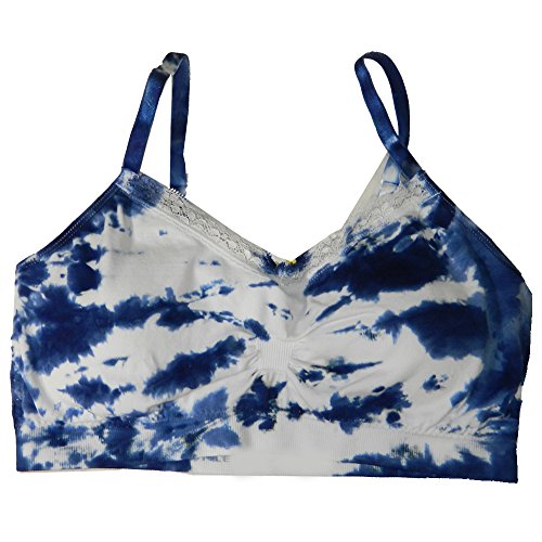 Coobie Strappy V-Neck Lace Trim Bras,Full Size,Nude/White,One Size,Navy Tie Dye