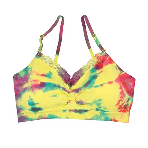 Coobie Strappy V-Neck Lace Trim Bras, Tie Dye, Citrus, One Size