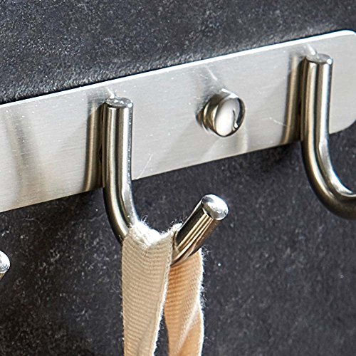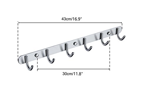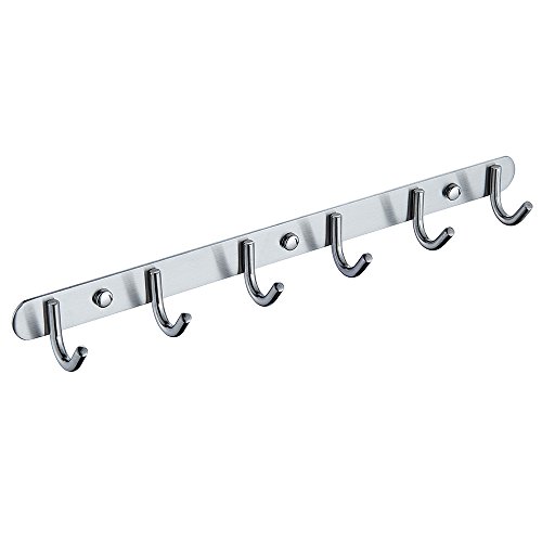 Mellewell Hook Rail Coat Rack 16.9 inches with 6 Heavy Duty Hooks, Strong Bathroom Kitchen Organizer Wall Hanger Hooks, Brushed Stainless Steel, 08001HK06
