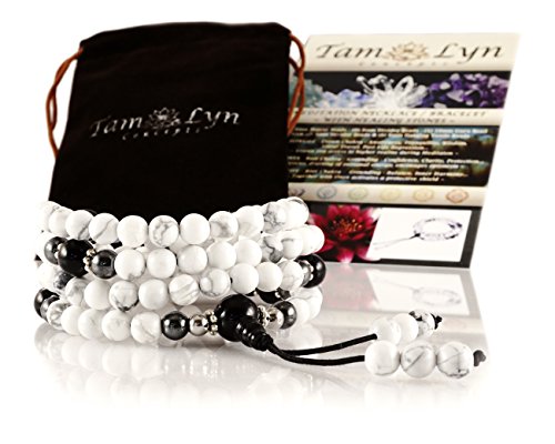 Howlite Necklace - Tibetan Mala Beads Bracelet - Buddhist Prayer Beads - Gemstone Jewelry for Yoga, Reiki, Mantras & Meditation