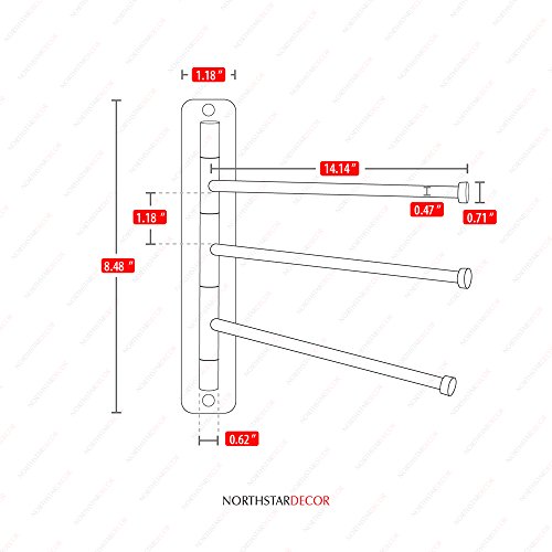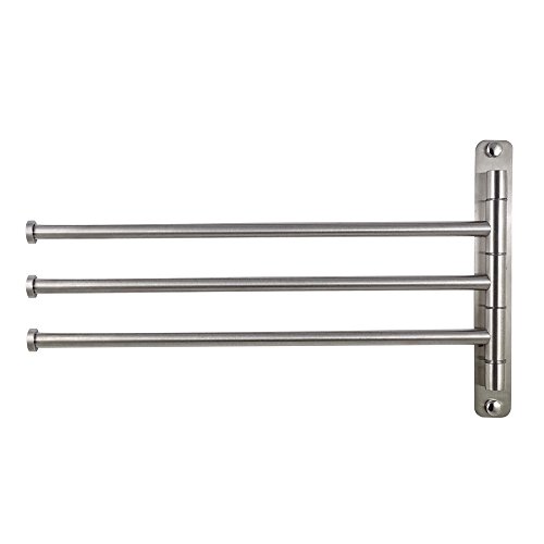NORTHSTAR DECOR NDTBA-BN Stainless Steel Swing Out Towel Bar, Bathroom Storage Organizer, Space Saving Wall Mount Unit with Folding Swivel Hanger in BRUSHED NICKEL (2 Variations Available) (3-Arm)