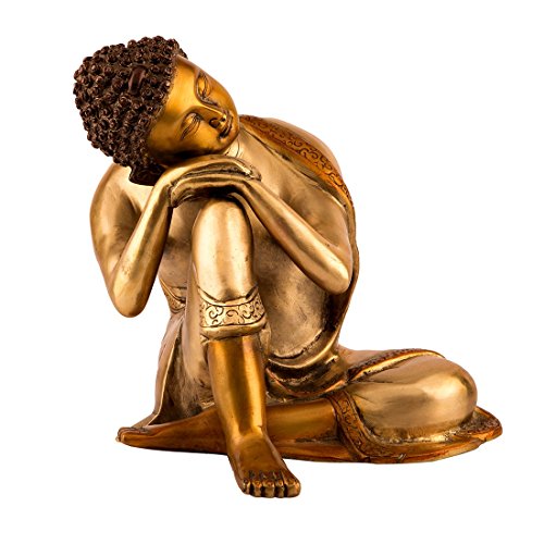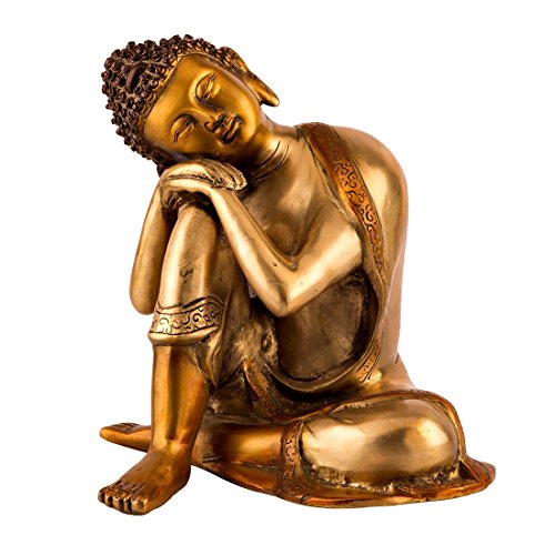 10" Large Buddhist Statue Brass Buddha Statue - Sleeping Resting Silver Golden Finish Sculpture ...