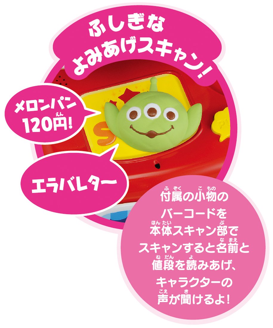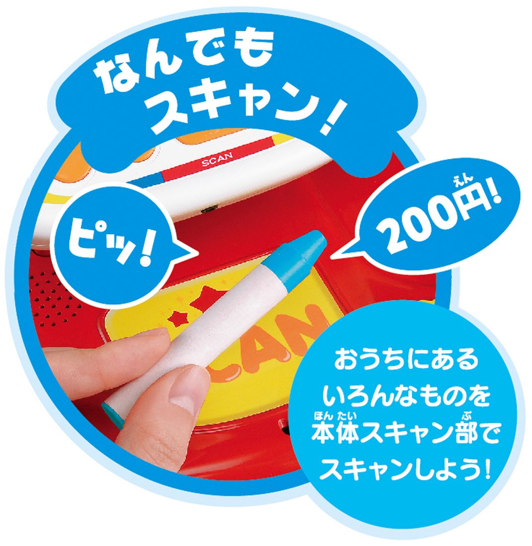 Scanning 7 categories of foodstuffs included in the cash register reads the amount and the name of the ingredients, and the character talks.