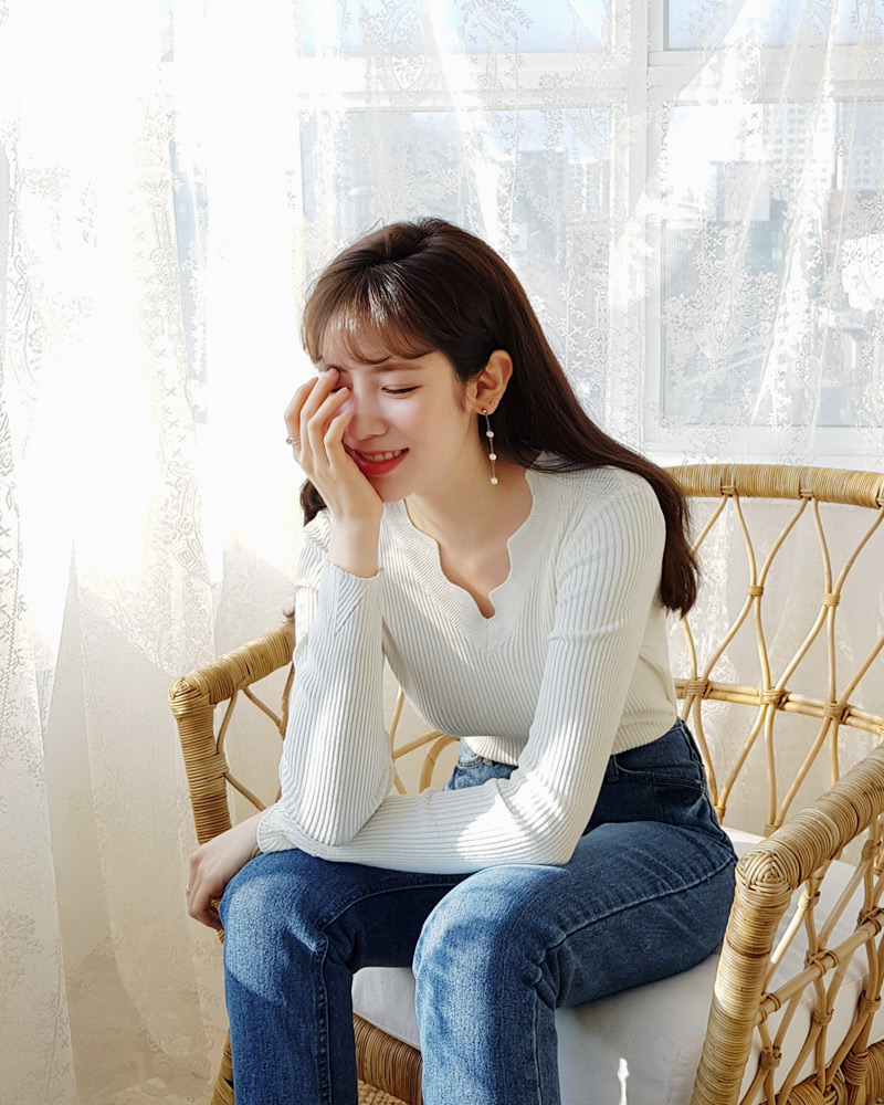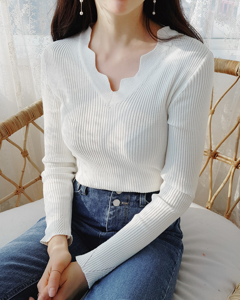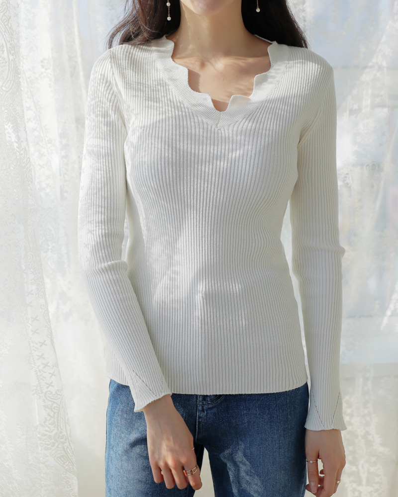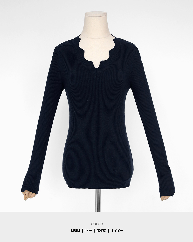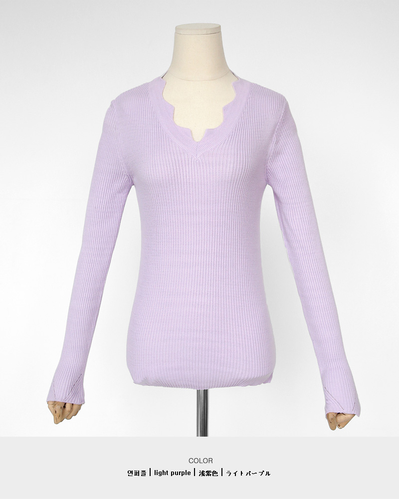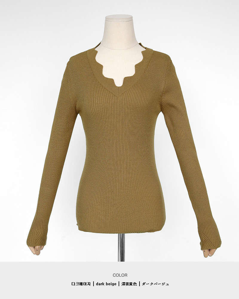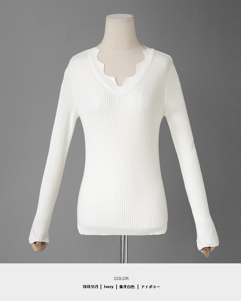 - スカラップポイントで女性らしいニットティーです