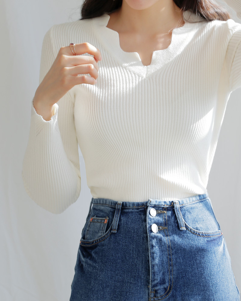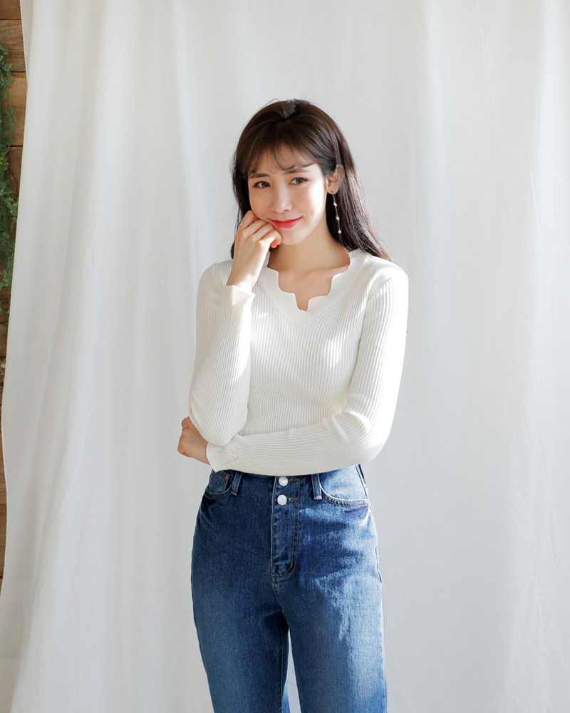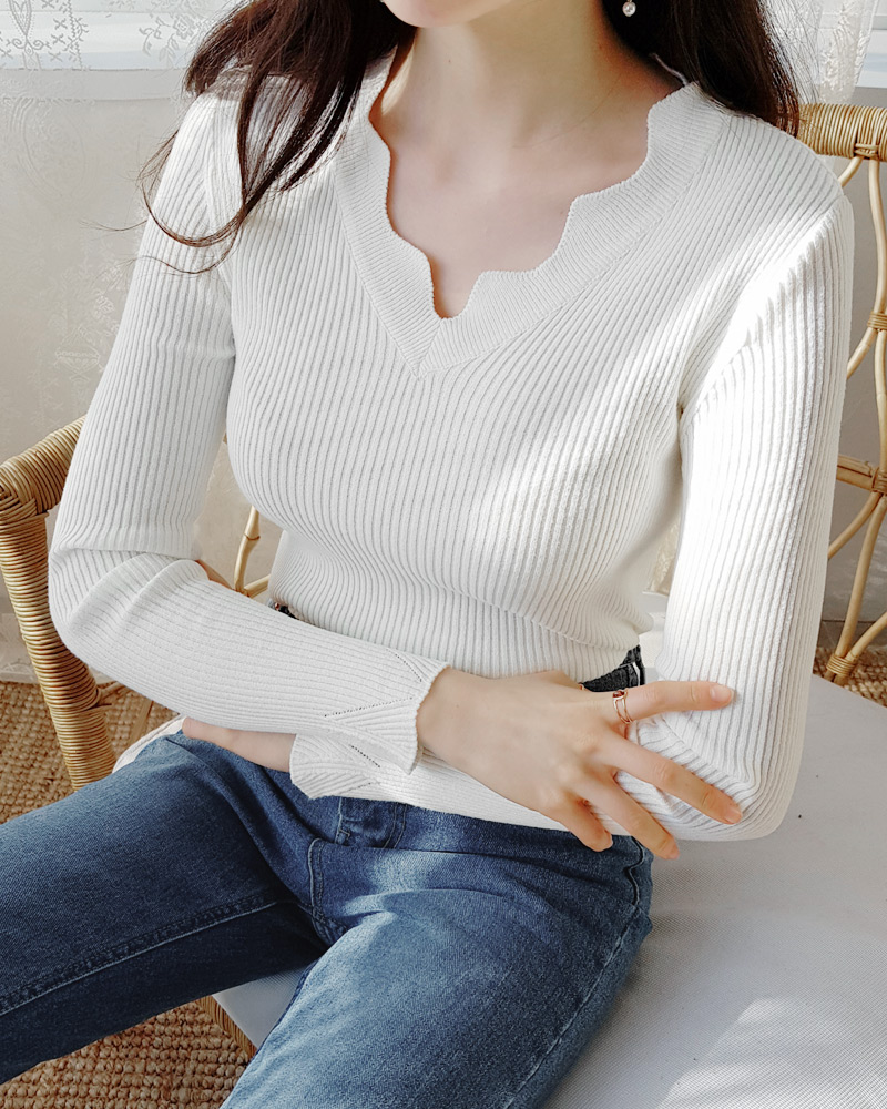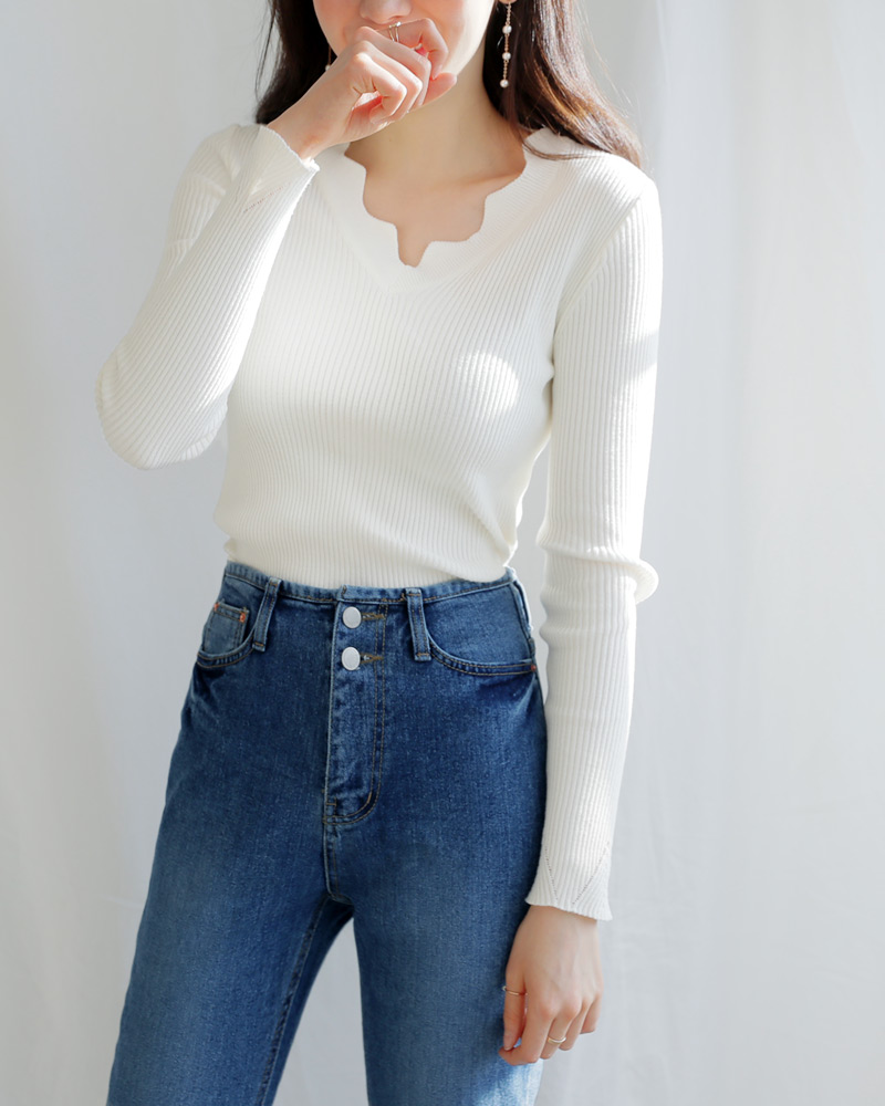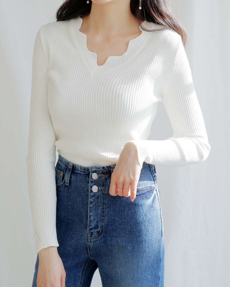 - Vネックラインにスカラップのデザインが加わり女性な雰囲気を演出してくれ