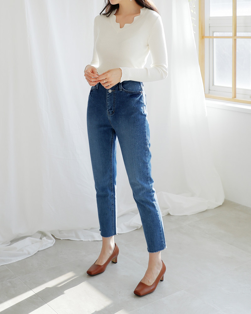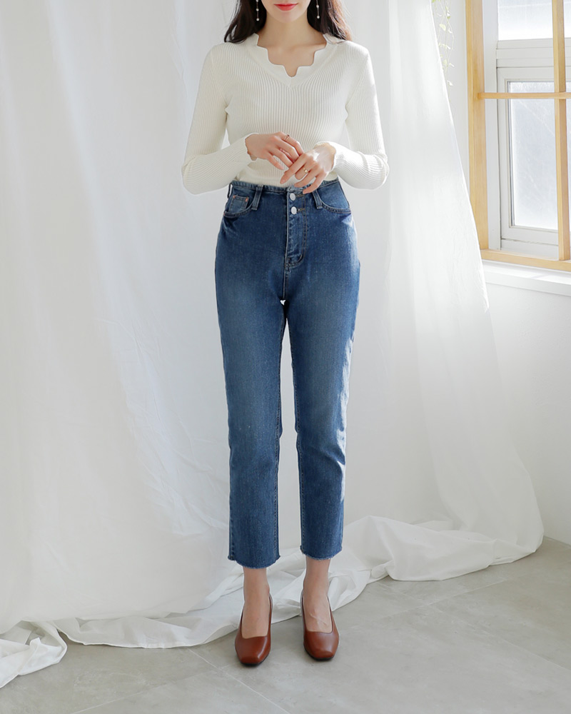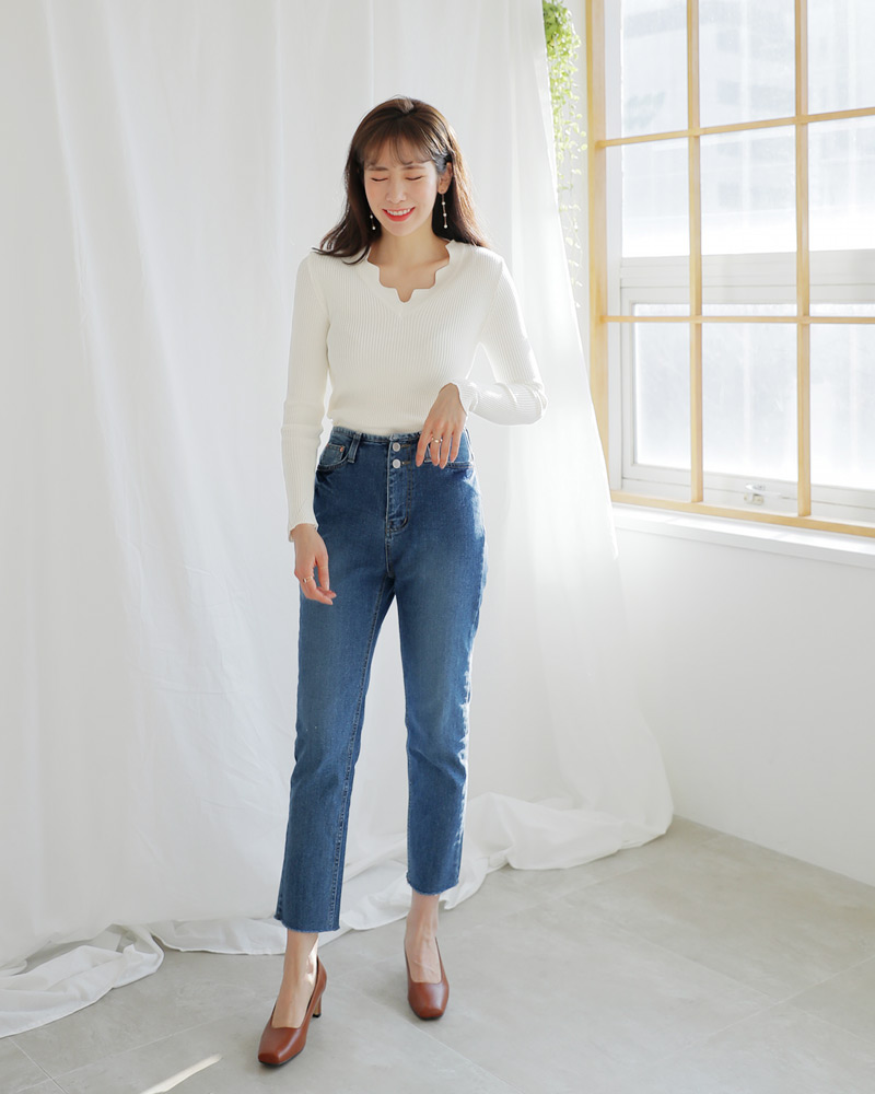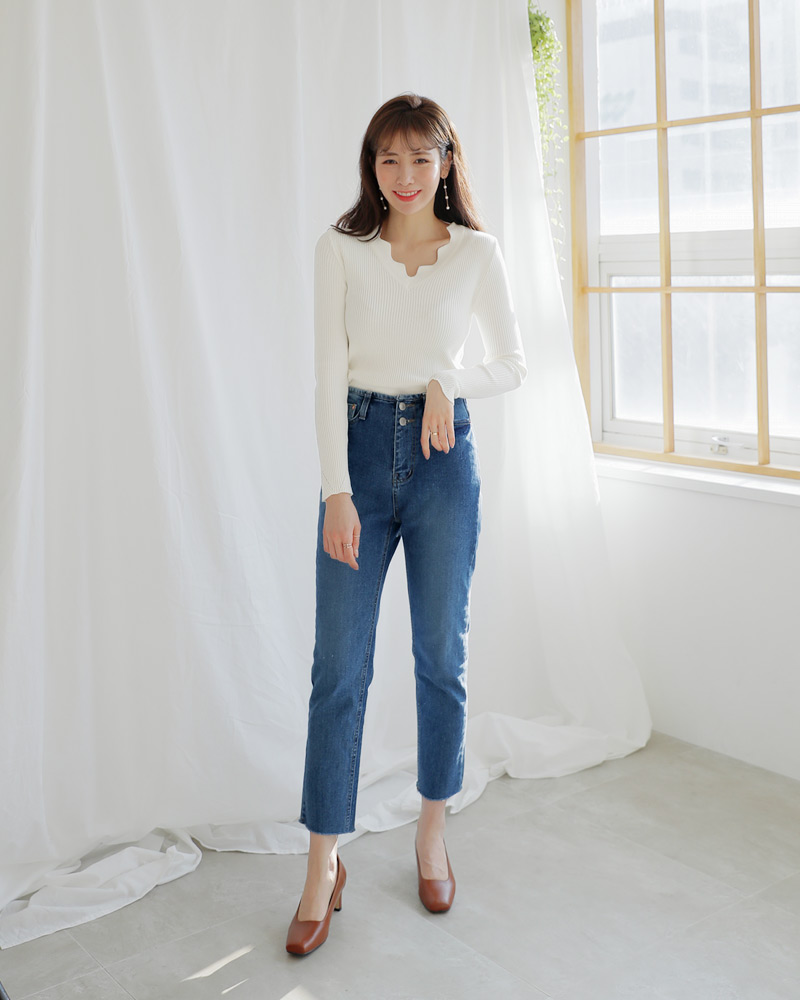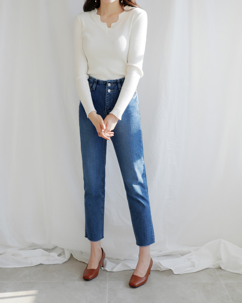 - Vネックラインにスカラップのデザインが加わり女性な雰囲気を演出してくれ
