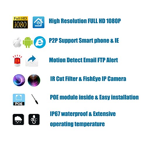-. Title : Panoramic FHD 1080P Security IP Camera, Wide Angle 1.7mm Fisheye Lens Surveillance Camera POE Day & Night vision, Motion Detect Email FTP Alert With P2P Remote Viewing & Playback