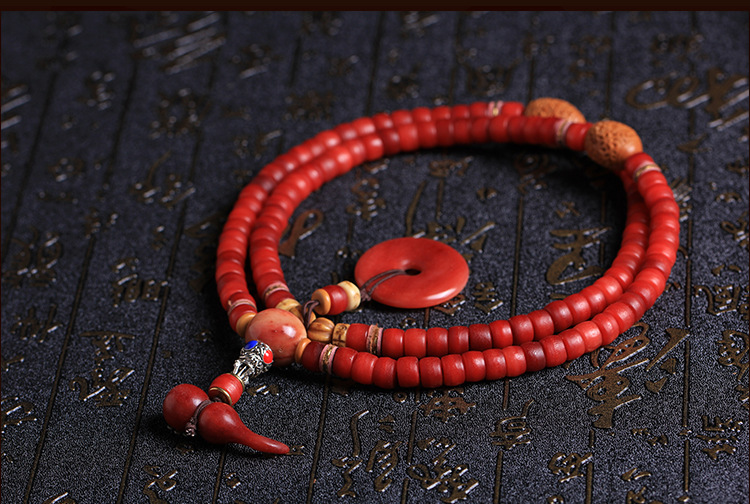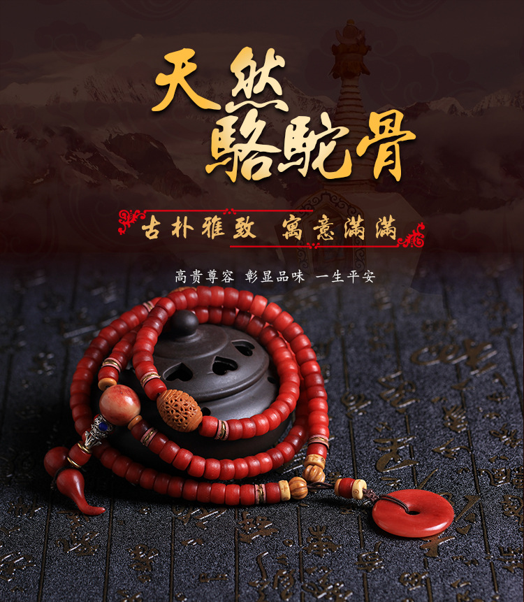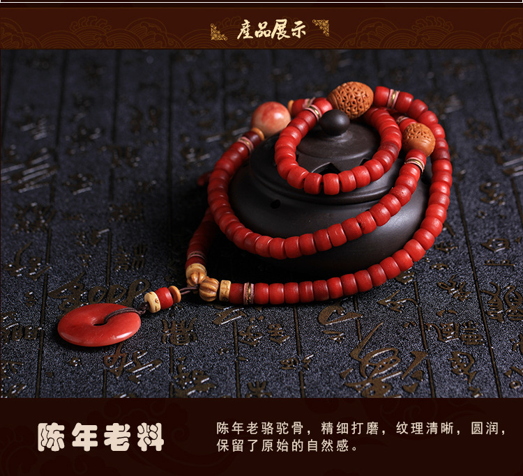 藏式满血骆驼骨沁血保真108颗佛珠手串男士驼骨手链礼品