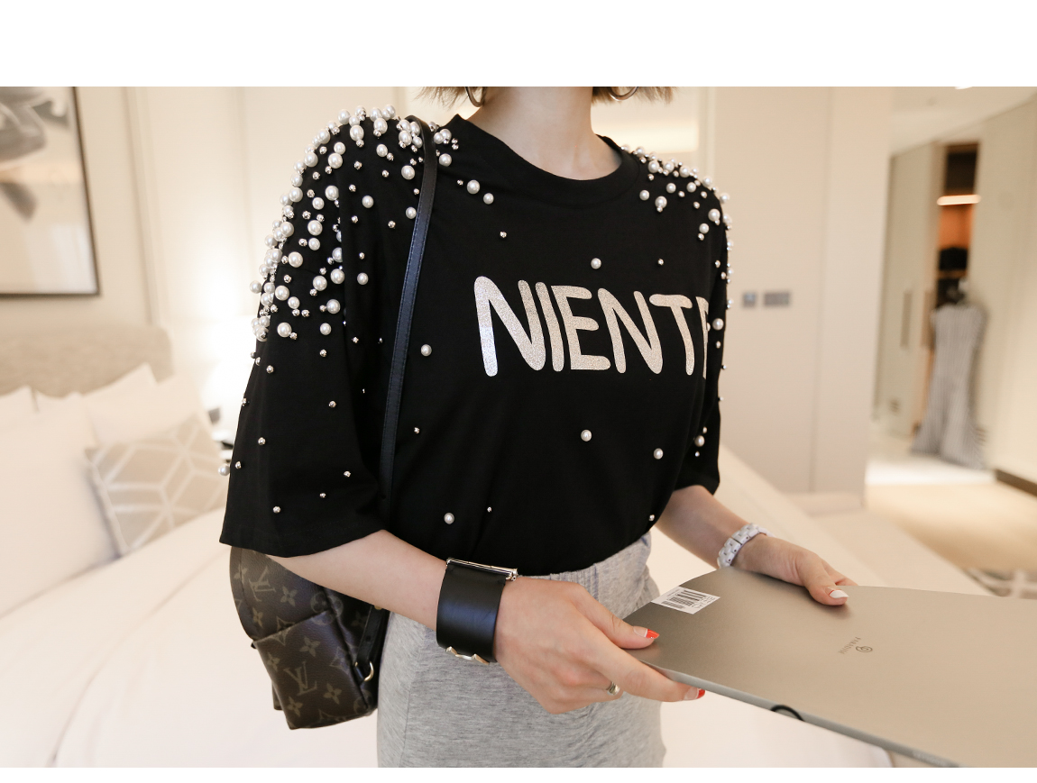 全体的な真珠とスパンコールディテールに
