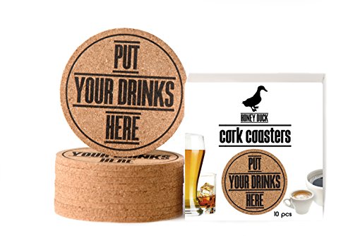 -. Title : Coasters - Coaster Set - Cork Coasters - Coasters for Drinks - 10 pcs Absorbent Coasters for Man Woman Kids - Beer Glass Wine Cup Hot Cold Drinks - Home Bar Table Cute Funny 4" Round Coasters