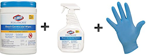 -. Title : Clorox Healthcare Bleach Germicidal Cleaner Spray and Wipe Combo Kit, With 100 Nitirle Medical Grade Gloves, Ready to Use Disinfectant Kit
