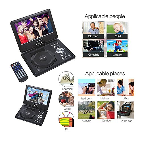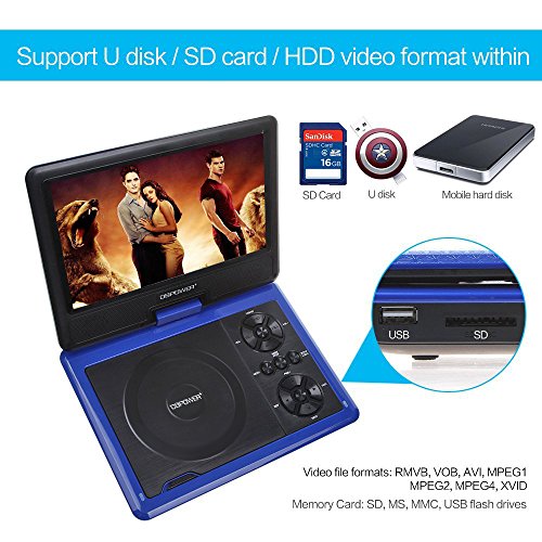 -. Title : DBPOWER 9.5" Portable DVD Player with Swivel Screen, Supports SD Card and USB, Direct Play in Formats MP4/AVI/RMVB/MP3/JPEG