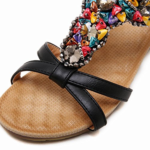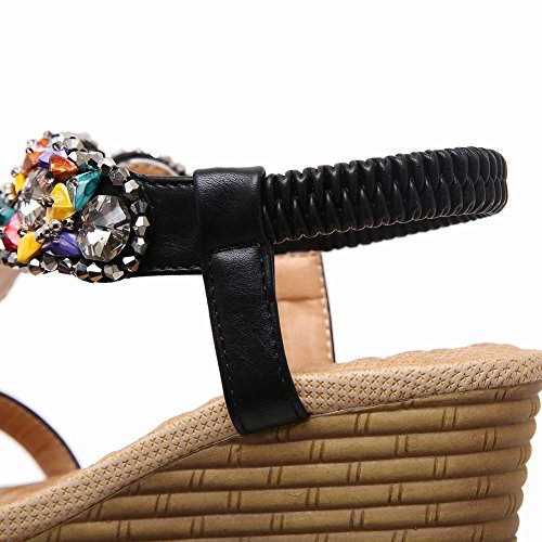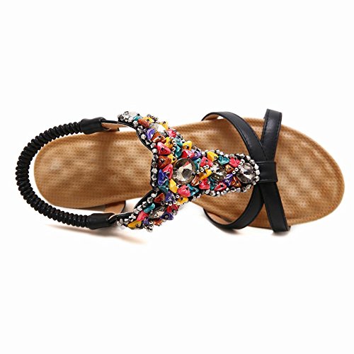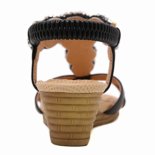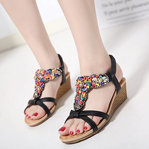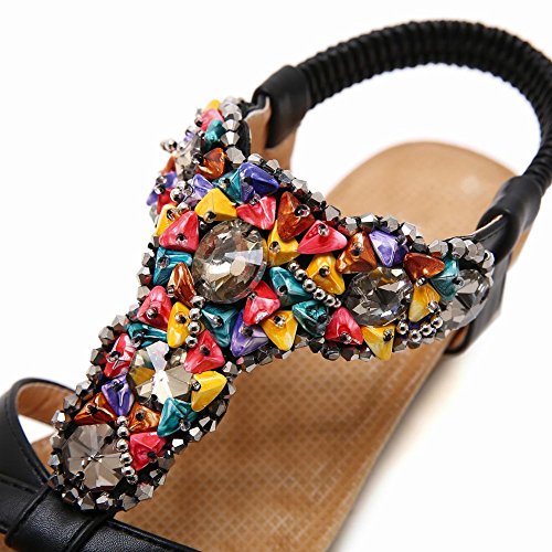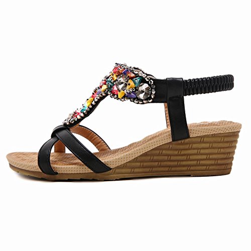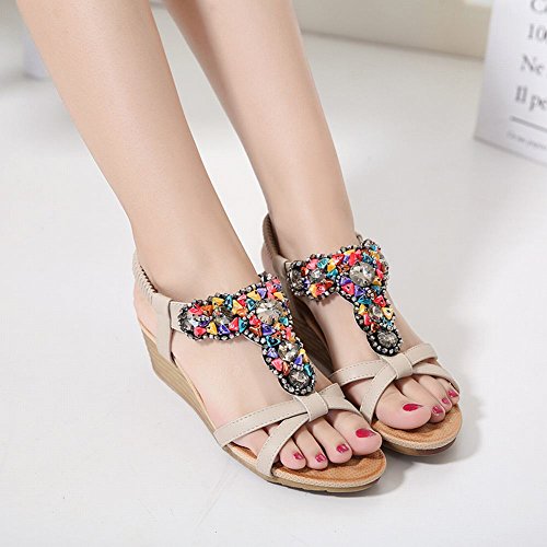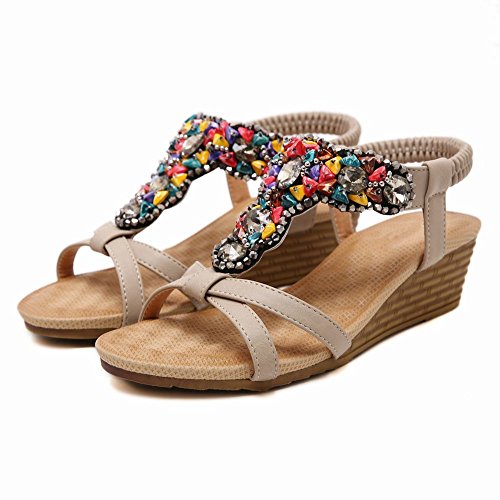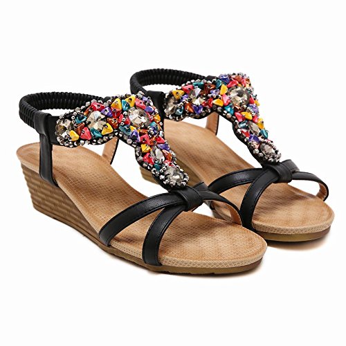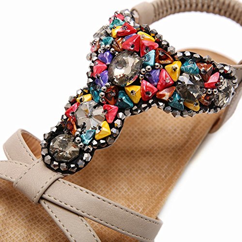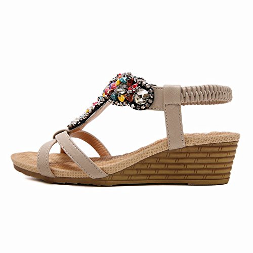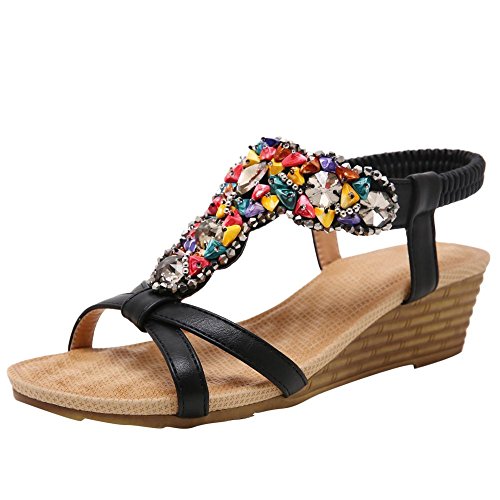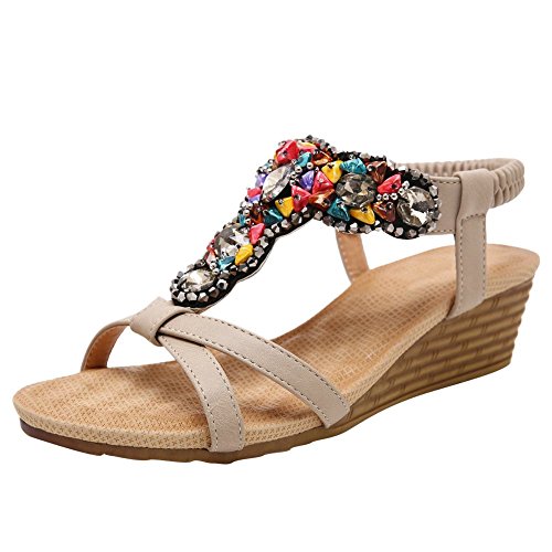 (Carolbar)/Women's/Sandals/DIRECT FROM USA/Carolbar Women's Beaded Rhinestones Bohemian Bungee T-Strap Wedges Sandals