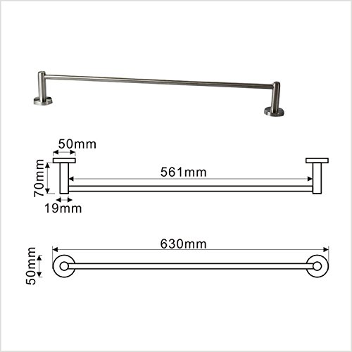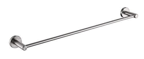-. Feature : APPEARANCE - Our QT Premium Modern Single Towel Bar with Round Base makes an excellent addition to any home or office bathroom. Its modern brushed stainless steel finish makes it both modern and clean looking. The mounting screws are hidden and / APPLICATIONS - Our Single Towel Bar is designed for both home and office bathroom use. Our towel bars/racks are made to be installed with ease on any wall or cabinet that you can drill a hole into. / MATERIALS - One of our biggest advantage over our competitors is that our Bars/Racks are made from 304 Stainless Steel versus plastic or nickel coated alternatives. Our use of the finest 304 Stainless Steel ensures our products are water and rust proof. Each of our towel bars/racks comes with a mounting kit that is also made from 304 Stainless Steel which adds to the durability of our products. / DIMENSIONS - Bar length is 24 Inches (60 cm). The bar diameter is 5/8 Inch (1.5 cm). The bar extends out 2 3/8 inches (6 cm) from the wall. / 100% SATISFACTION GUARANTEED - Customer satisfaction is our highest P.R.Iority, if for any reason you are not completely satisfied with our bars/racks we will immediately provide you a full refund (or replace your item). Order today to enjoy our Towel Bars / Racks.