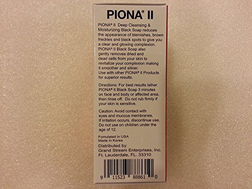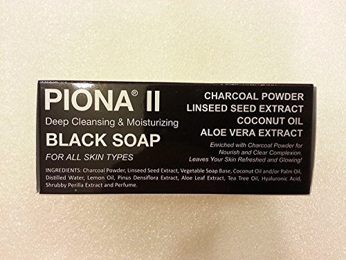 Piona II Deep Cleansing and Moisturizing Black Soap 6.35 Ounce - Enriched with Charcoal Powder - Clears Complexion and Leaves Skin Glowing