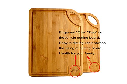 - Engraved "One" "Two" on these twin cutting board. Easy to distinguish between the using of cutting board. They are perfect for every food prep from slicing meat to chopping veggies, serve up appetizers or make cocktail garnishes. Kitchen, Dining Room or even the BBQ.