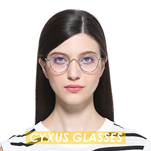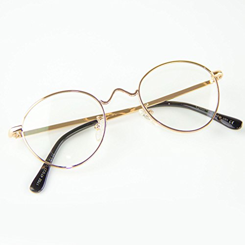 Cyxus Clear Lens Plain Glasses,Retro Fashion Unisex Eyewear, Metal Round Frame (Gold)